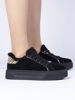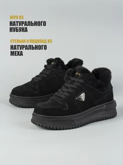 Кроссовки VALENTINO зимние кожаные на меху черные