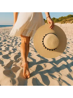 Пляжная шляпа соломенная летняя с широкими полями