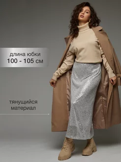 Юбка с пайетками блестящая серебро