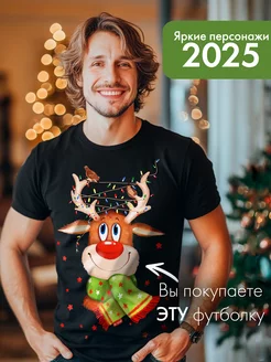 Футболка новогодняя мужская с оленем 2025
