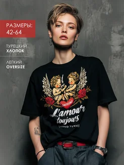 Футболка оверсайз с принтом летняя больших размеров
