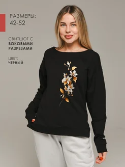 Свитшот с жасмином с разрезами облегченный