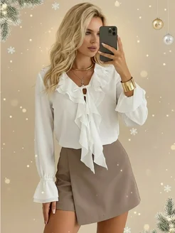 Рубашка блузка школьная оверсайз нарядная с длинным рукавом