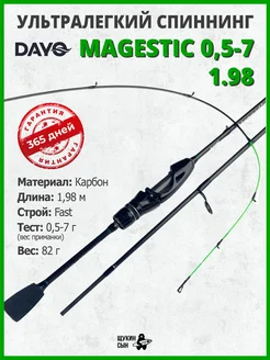 Спиннинг для рыбалки ультралайт легкий 1.98м тест 0.5-7