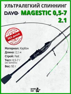 Спиннинг для рыбалки ультралайт легкий 2.1м тест 0.5-7