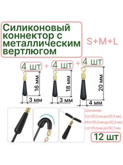 Коннекторы силиконовые с вертлюгом скользящие МИКС 12 шт