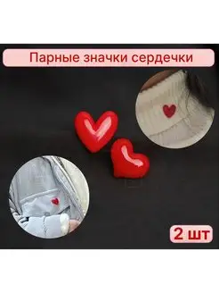 Набор парных значков брошек из 2шт в виде красных сердечек