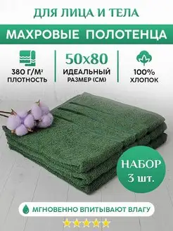 Махровое полотенце для рук, лица и волос. Набор 3шт. 50х80см