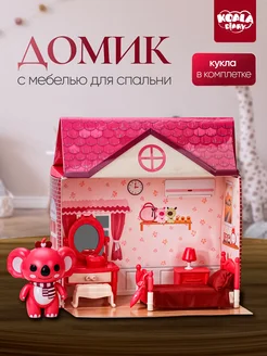Домик с мебелью для спальни и кукла