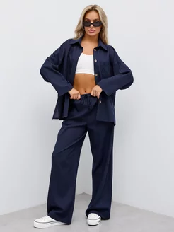 Льняная летняя рубашка оверсайз с длинным рукавом