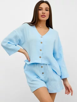 Летняя рубашка муслин оверсайз укороченная хлопок