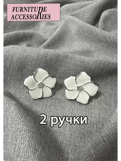 Ручка мебельная кнопка Цветок на серебре с белой эмалью 2
