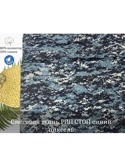 Смесовая ткань Грета Рип Стоп синий пиксель цифра 2 метра