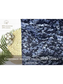 Смесовая ткань Твил мягкая синий пиксель цифра (400*150)
