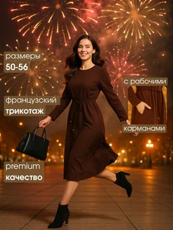 Платье нарядное повседневное футляр плюс сайз с разрезом