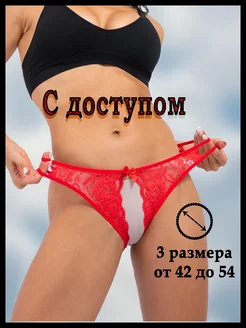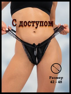 Трусы женские кружевные с доступом черные с прорезью, 18+