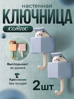 Крючок ключница настенная самоклеящаяся Котик