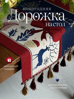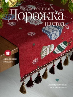 Новогодняя скатерть дорожка на стол тканевая 33х180