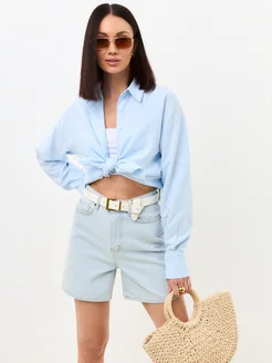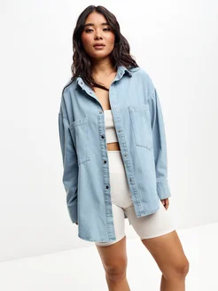 Рубашка джинсовая асимметричная на кнопках с длинным рукавом