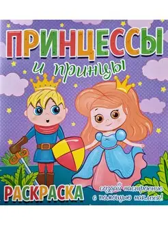 Раскраска + 12 наклеек-лиц. Принцессы и принцы