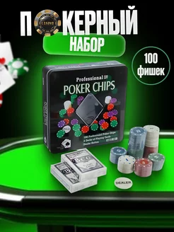 Покерный набор настольная игра 100 фишек покер карты