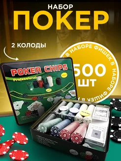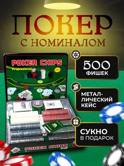 Настольная игра покерный набор 500 фишек покер сукно карты