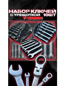 Ключи гаечные с трещоткой шарнирные 6-22мм 10 шт