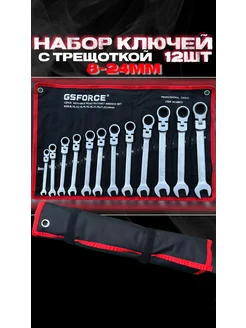 Набор ключей c трещоткой шарнирные 8-24мм 12 шт