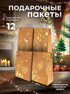 Пакеты новогодние для подарков, набор 12 шт крафт "Золото"