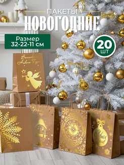Пакеты новогодние для подарков, набор 20 шт крафт "Золото"
