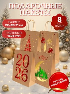 Пакеты новогодние для подарков крафт с ручками 20 шт