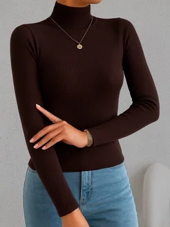 Тонкая водолазка в рубчик с горлом теплая стильная