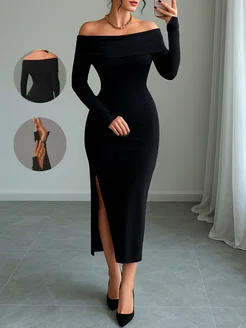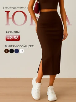 Длинная юбка лапша карандаш трикотажная с разрезом