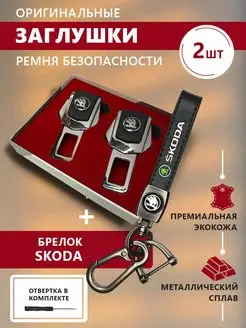 Заглушки ремня безопасности и брелок Skoda с карабином