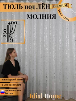 Тюль под лен 400х230 в спальню готовая с утяжелителем