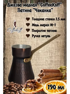 Турка медная для кофе 190 мл патина Чеканка, джезва кованая