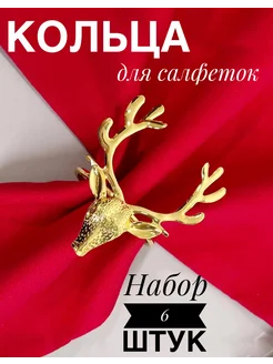 Кольца для салфеток новогодние 6 шт олень золотистые
