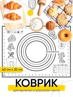 Силиконовый коврик для выпечки и раскатки теста 40х30