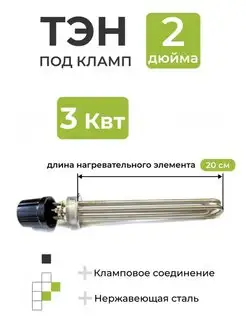 ТЭН 3 кВт под кламп 2 дюйма (нагреват. элемент 20 см)