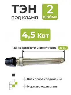 ТЭН 4,5 кВт под кламп 2" (длина нагреват. элемента 26 см)