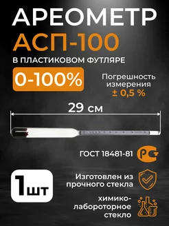 Ареометр для спирта АСП-100 (0-100 %) пластиковый тубус