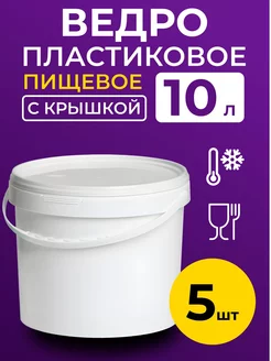 Ведро пластиковое пищевое с крышкой 10л (белое), 5 шт