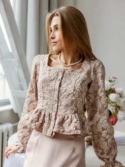 Нарядная блузка с баской жаккард