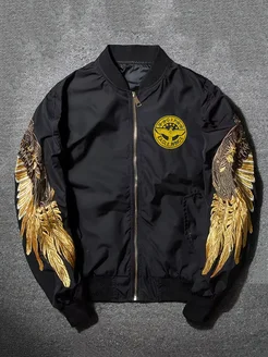 Куртка - косуха бомбер Крылья с вышивкой утепленная