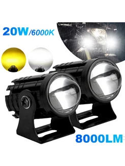 Светодиодные линзы Белый Жёлтый доп. фара 2шт