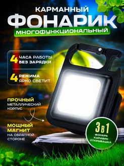 Мини фонарик брелок карманный магнитный с карабином