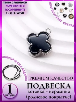 8193 Стильная подвеска керамика четырехлистник черный 1 шт