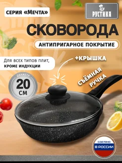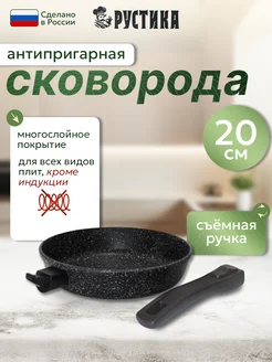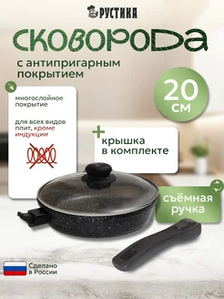 Сковорода антипригарная 20 см со съемной ручкой и крышкой