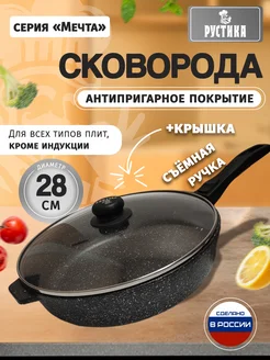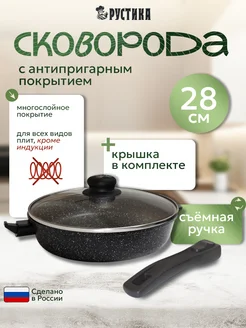 Сковорода антипригарная 28 см со съемной ручкой и крышкой