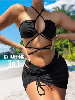 Купальник раздельный с высокой посадкой 3 в 1